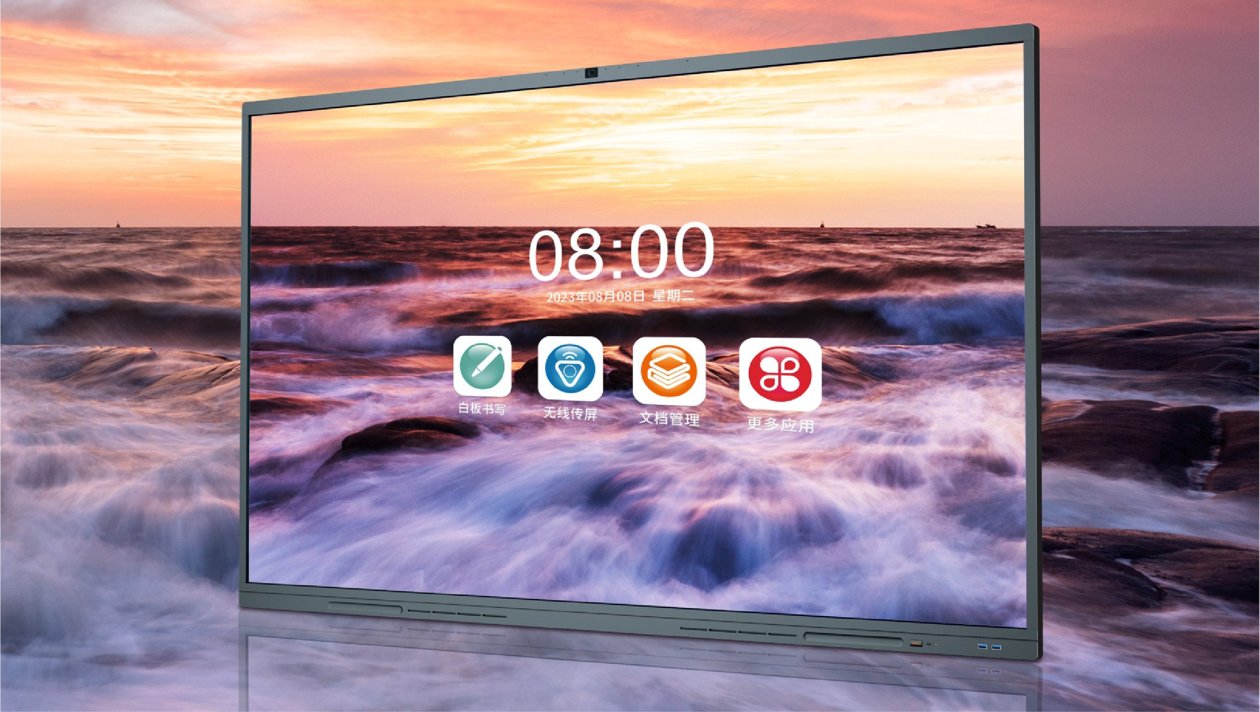 八機合一:集合投影儀、幕布、電子白板、電視、電腦、平板、機頂盒、音響八種設備功能于一體,化繁為簡,提高企業(yè)形象、辦公效率。