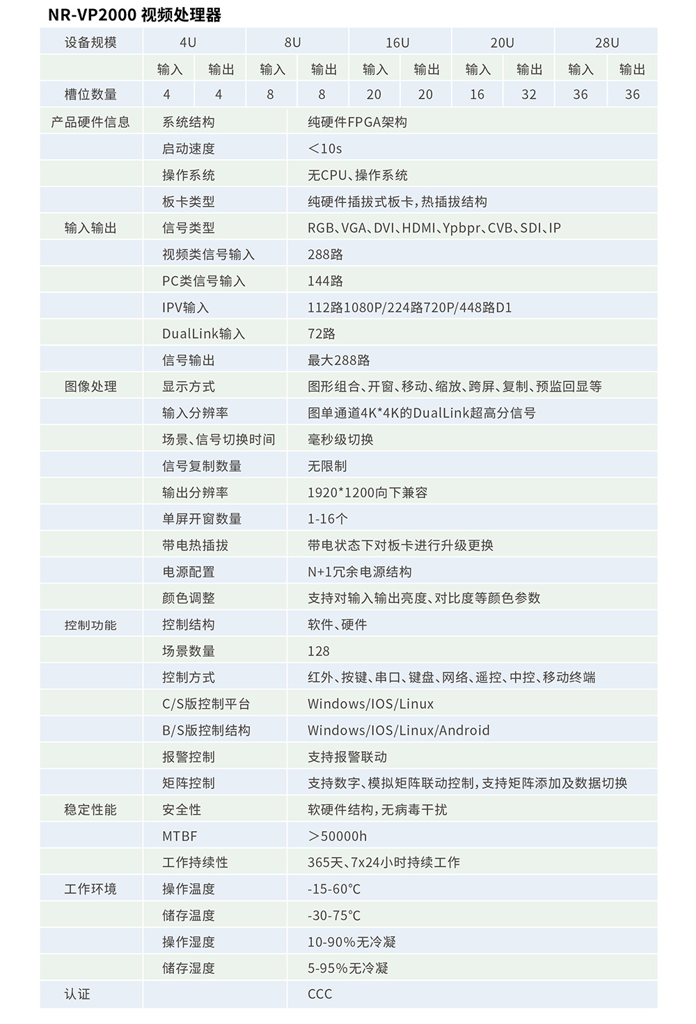 支持VGA、DVI、HDMI、SDI、CVBS、Ypbpr、Duallink、IP-Video、HDBaseT、Fiber等多信號混合輸入